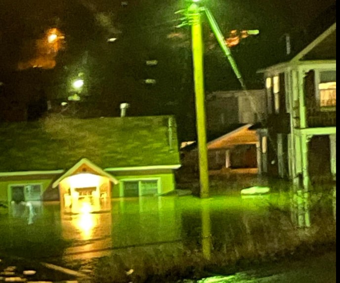 Now town volunteers are at the firehall doing sandbagging. Pumper truck crews are trying to clear storm drains and manholes — working around the clock.