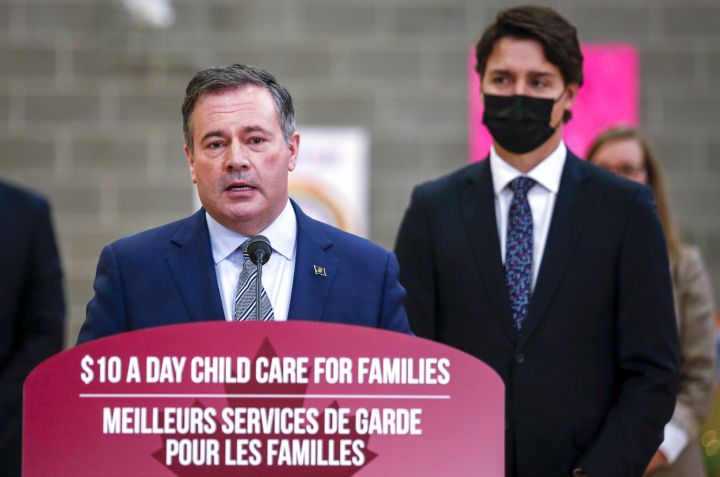 The warning came during a rare appearance between Kenney and Prime Minister Justin Trudeau as Alberta became the latest province to agree to participate in a national child-care program.