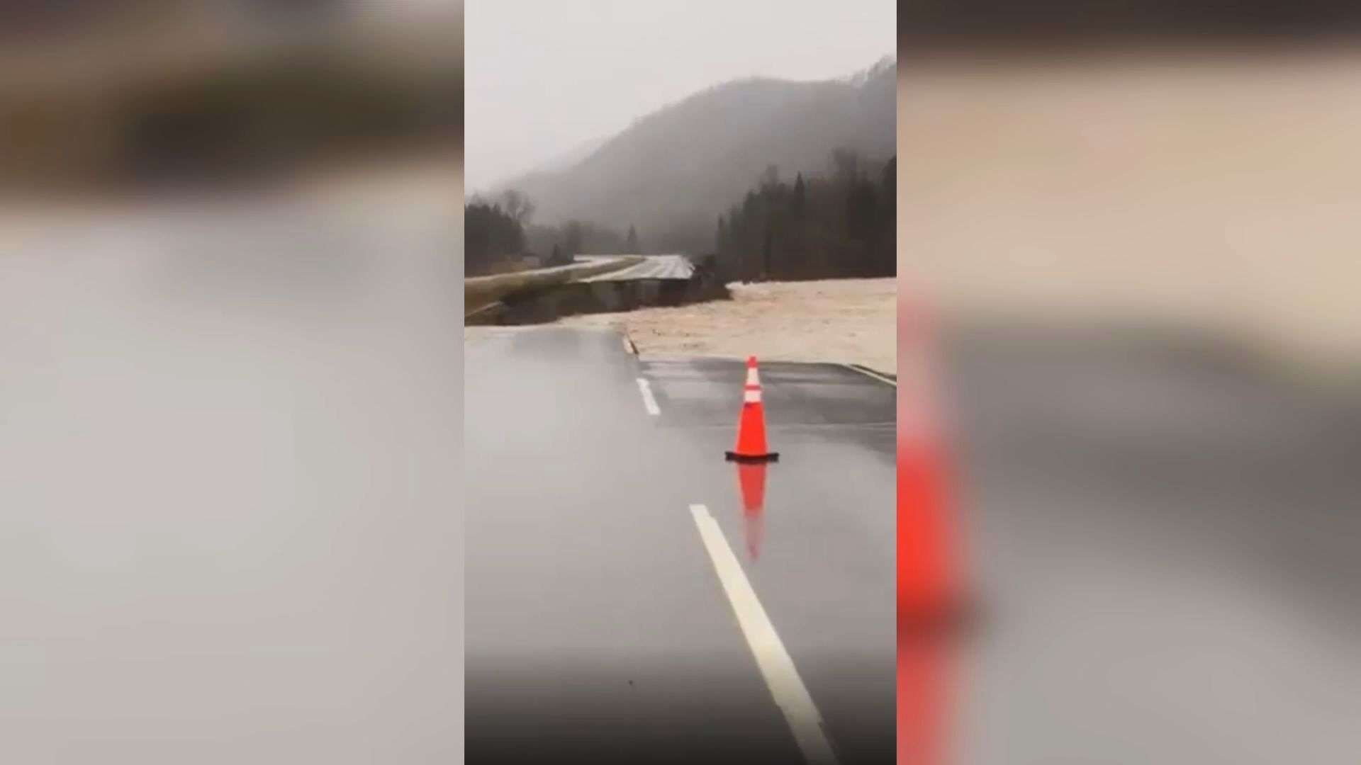 The southbound lanes between Larson Hill and Juliet have been washed into the river, provincial officials said.