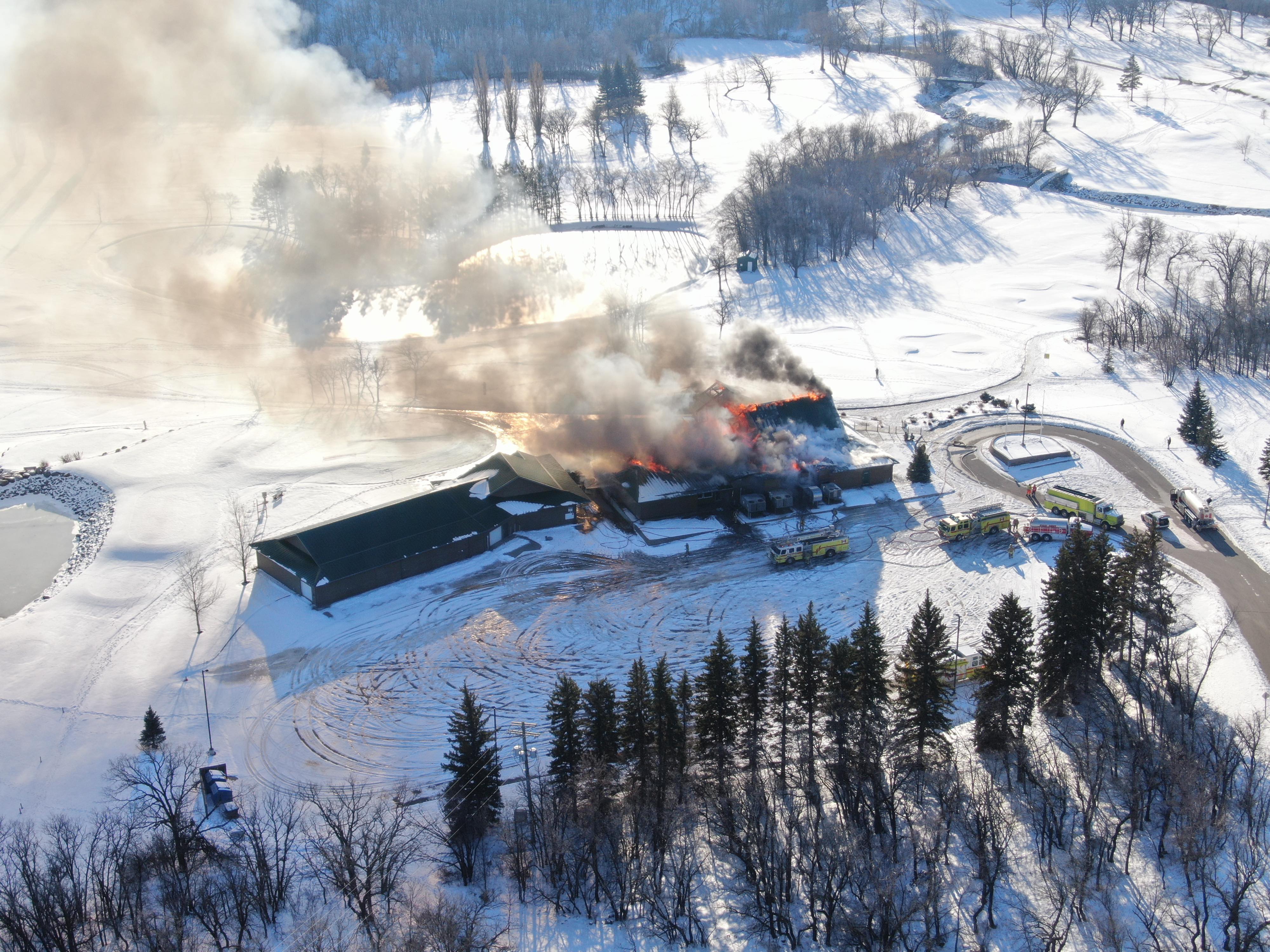 “The extent of the fire pretty much put us into a defensive mode, where we were to strictly fight the fire from outside of the building, and protecting the building adjacent to it, which is known as the pro shop,” Reimer says.