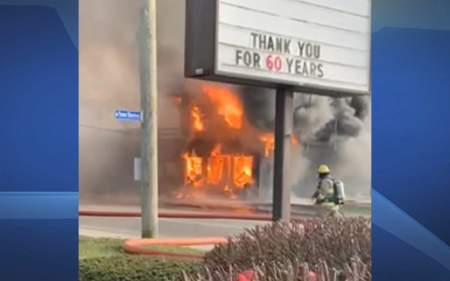 Video from the scene taken by a witness shows heavy flames and thick smoke billowing from the building and shrouding the street.