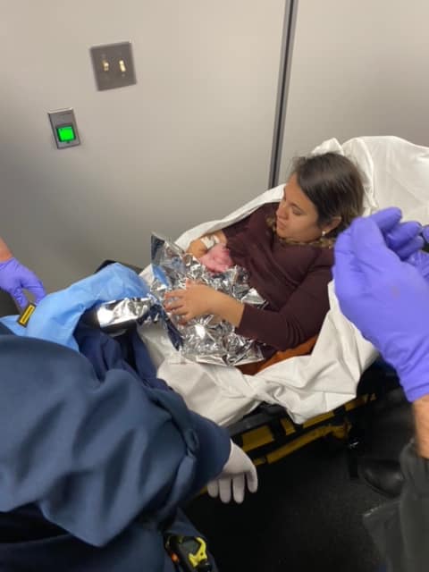 The firefighters found Avilia on the floor at the back of the plane. After a quick assessment, they decided to deliver the baby on the spot.