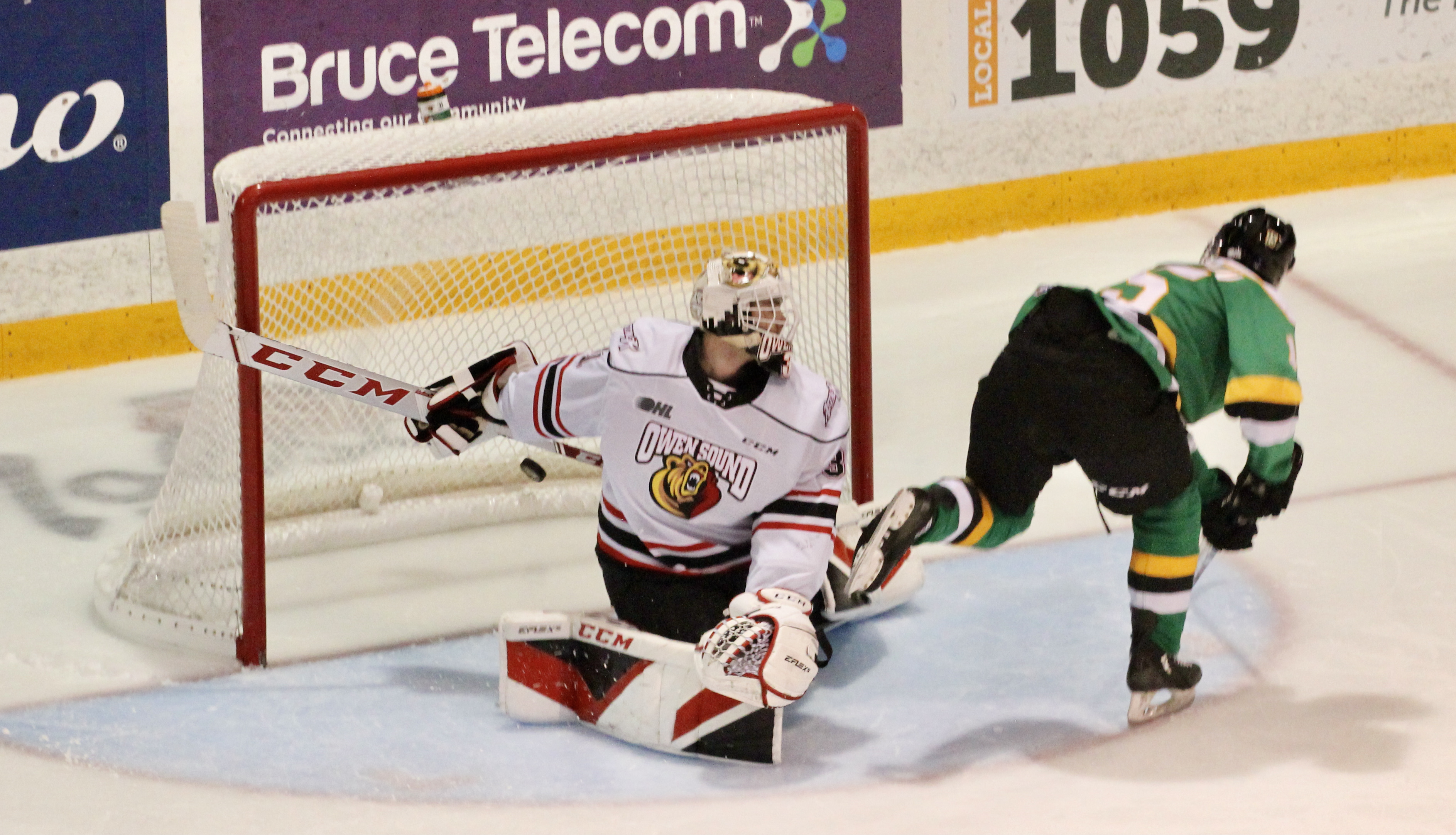 Again Owen Sound came back. Servac Petrovsky scored to tie the game, 2-2.