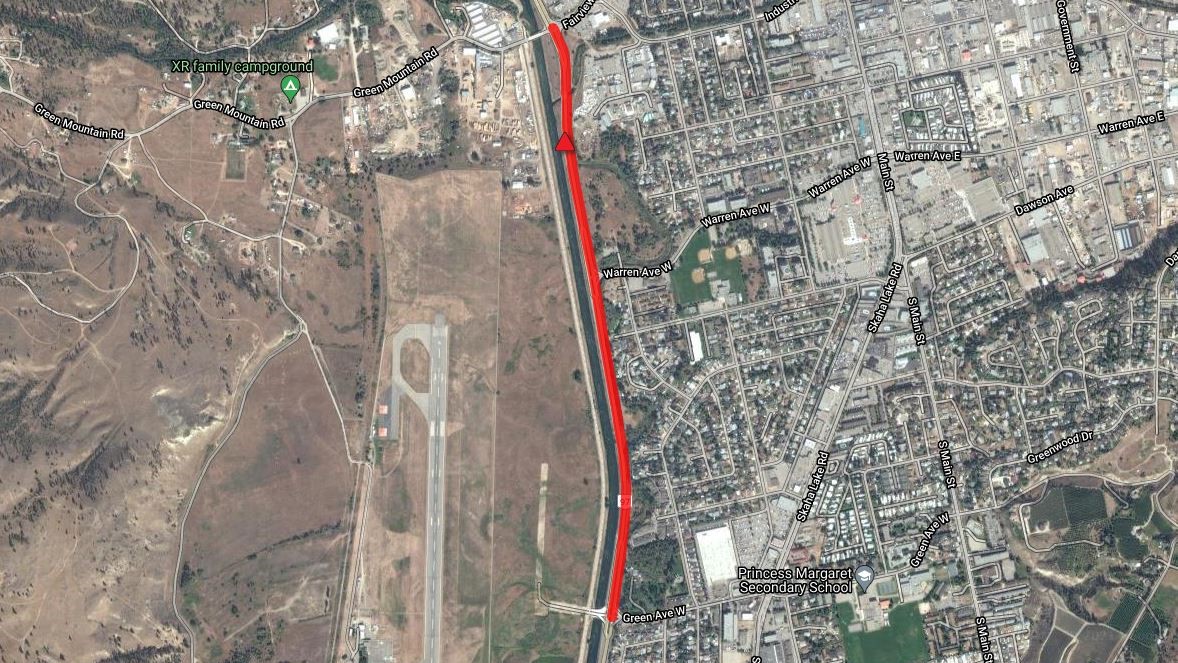 According to DriveBC, the highway was closed for about 90 minutes between Fairview Road and Green Avenue West, but has since reopened.