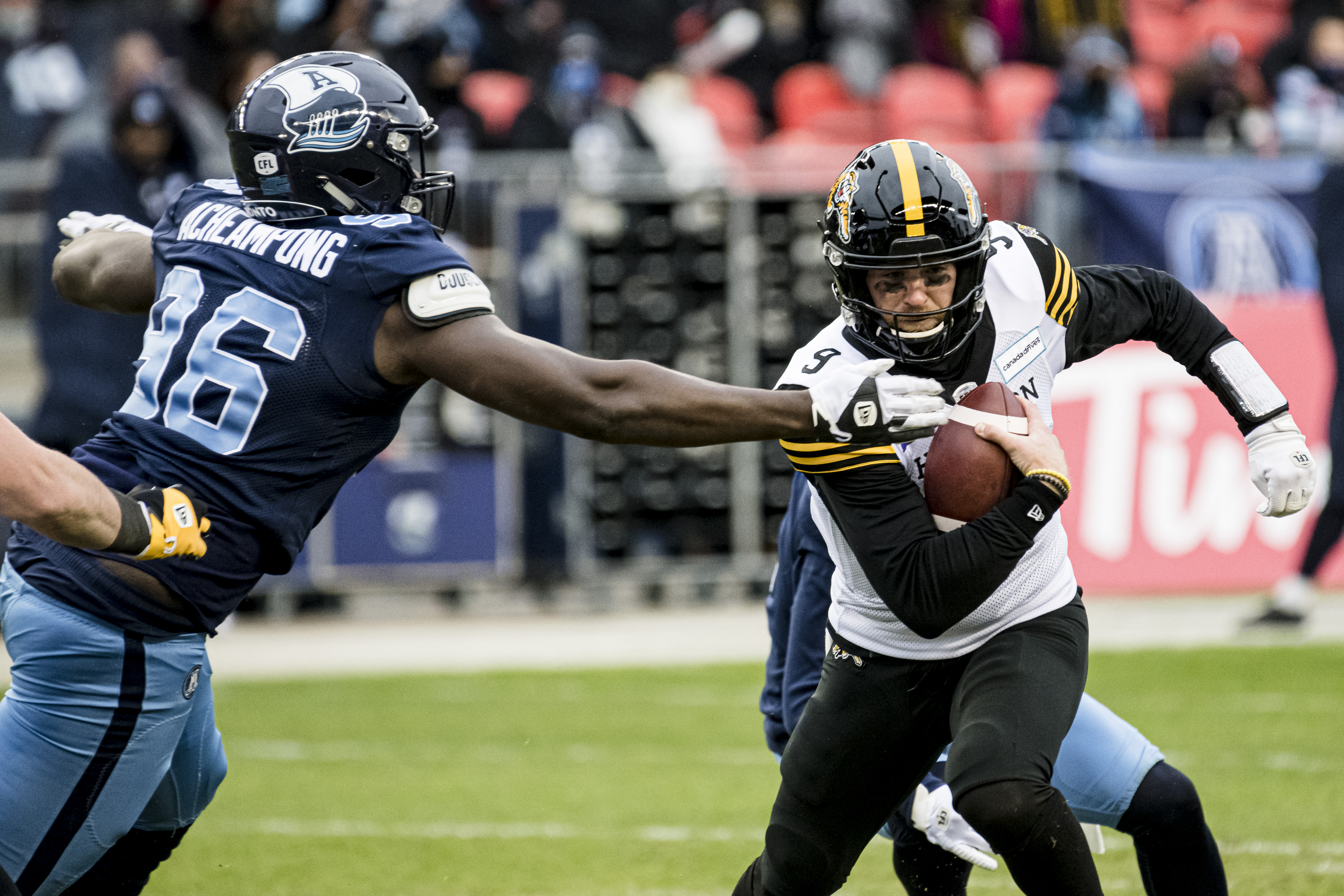 Despite possessing the ball inside Hamilton’s five-yard line twice in the first quarter, Toronto had to settle for two Boris Bede field goals from 10 and 11 yards out.