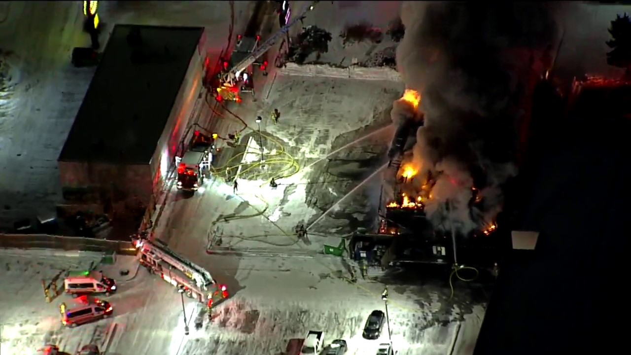 “On arrival, they had heavy smoke, heavy flame on the rear of the building, concentrated mostly on the outside. That prompted the call for a second alarm to bring more resources in, due to the proximity of an exposure just to the south of the building,” Stahl said as crews continued to battle the blaze just after 8 a.m.