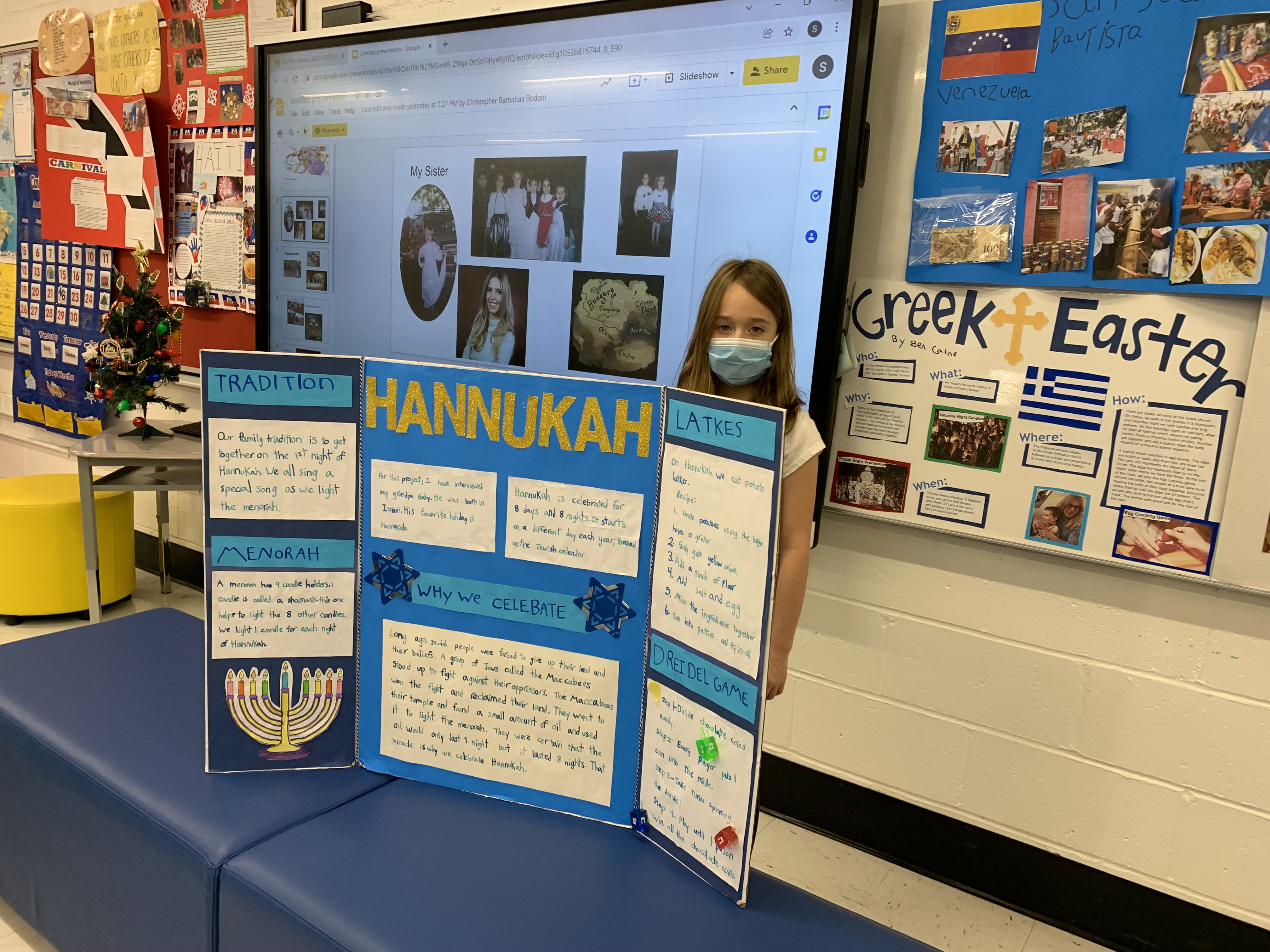 The school children used traditional poster boards, the classroom smart board and plenty of props to help in educating each other about their personal holiday customs and culture.