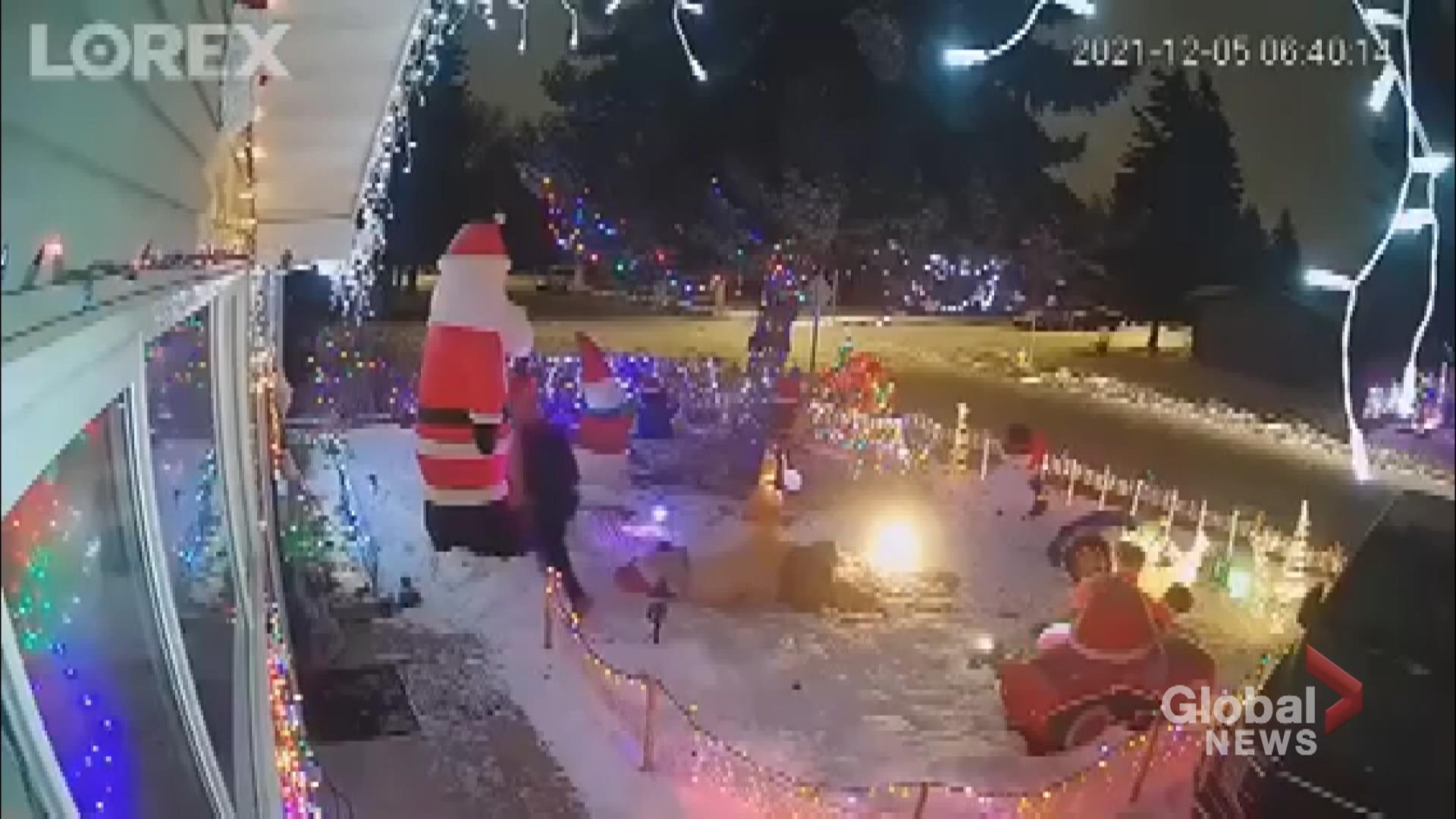 Early Sunday morning, Charyl Miranda’s home security camera captured a person destroying the Christmas lawn decorations at her Saskatoon home.
