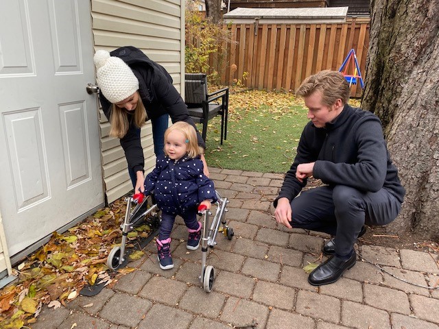 In the backyard of their Toronto home, on a blustery December afternoon, parents Julia Sisnett and Cameron Kilner push their 19-month-old daughter on a colourful swing.