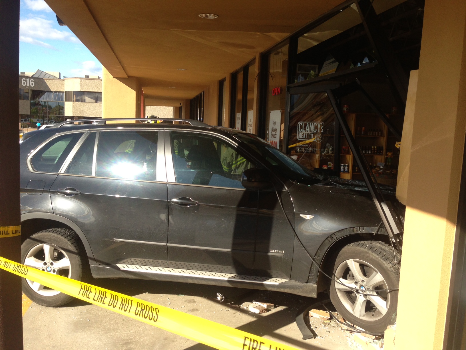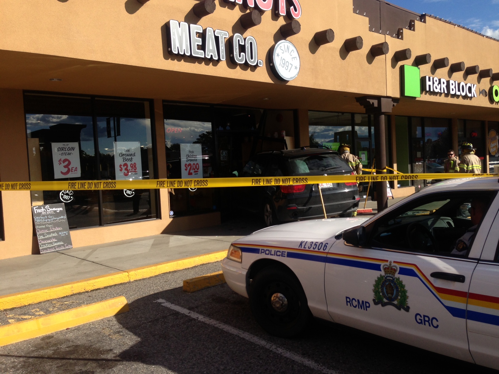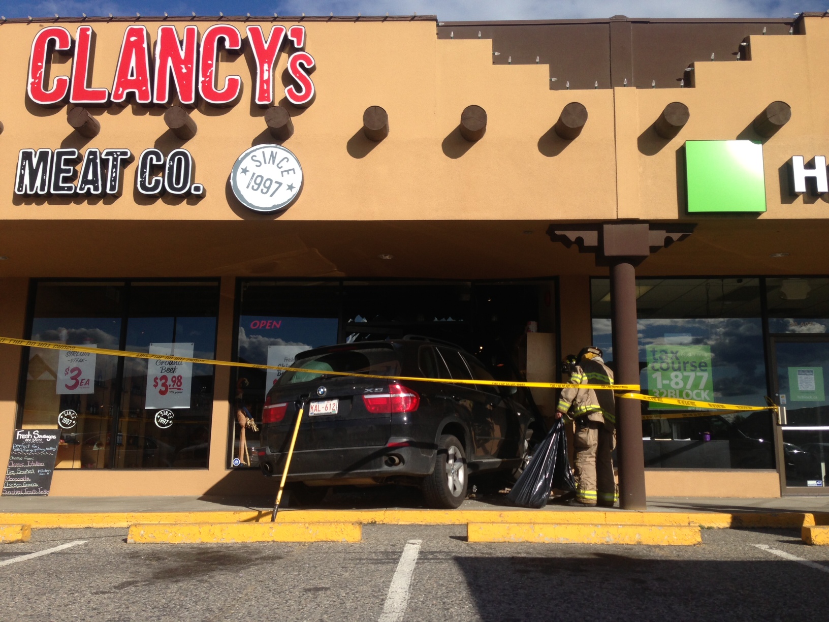 KELOWNA — A driver smashed through the entrance of Clancy’s Meat Company in Kelowna’s Mission Monday afternoon.