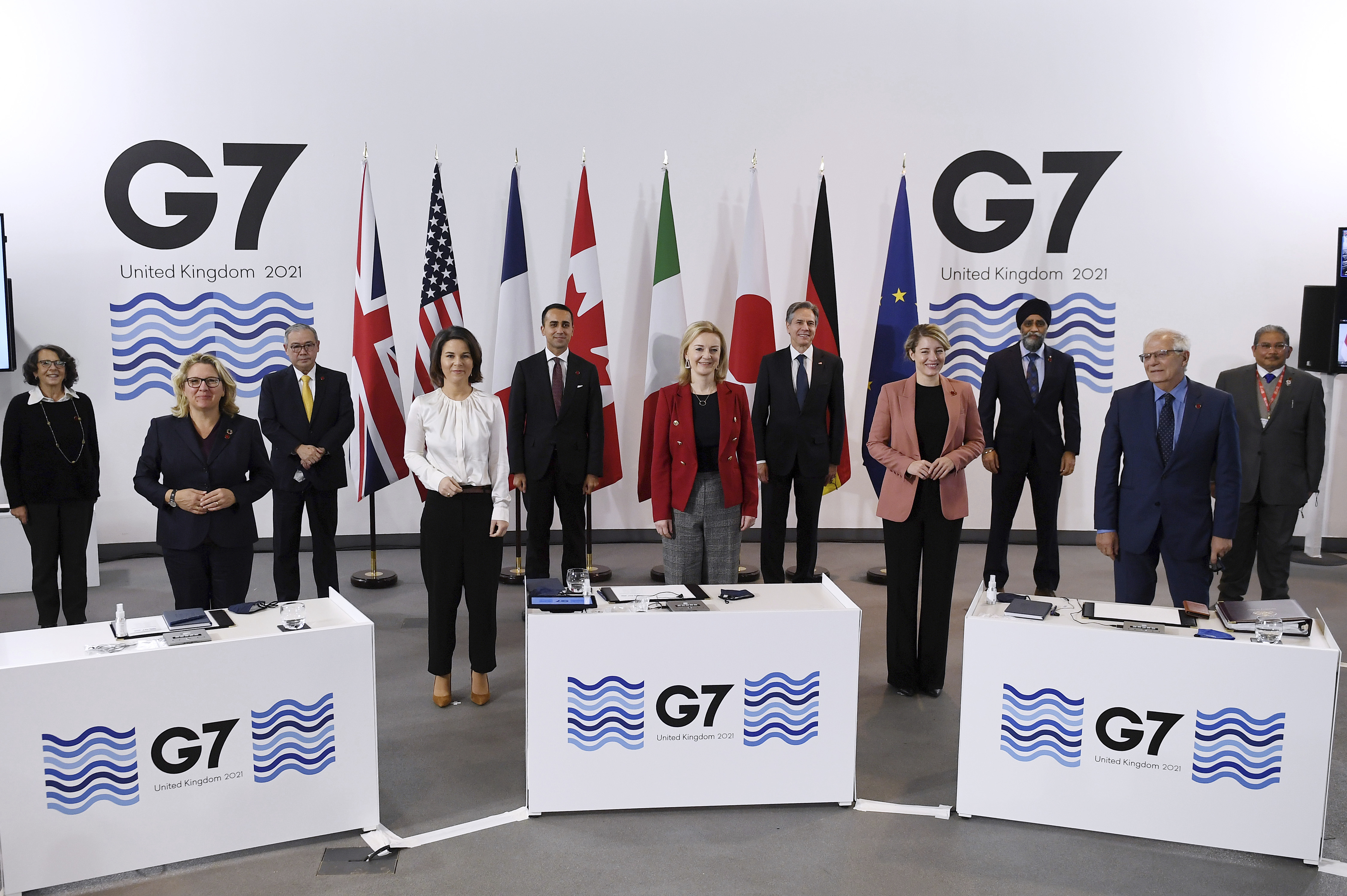 China’s muscle-flexing in the Indo-Pacific region and the ailing Iran nuclear deal were also on the agenda for the meeting of top diplomats from the U.K., the United States, Canada, France, Germany, Italy and Japan at the dockside Museum of Liverpool.
