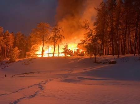 They say the lodge was vacant and had been closed up for the season at the time of the fire. The building is only accessible by snowmobile at this time of year.