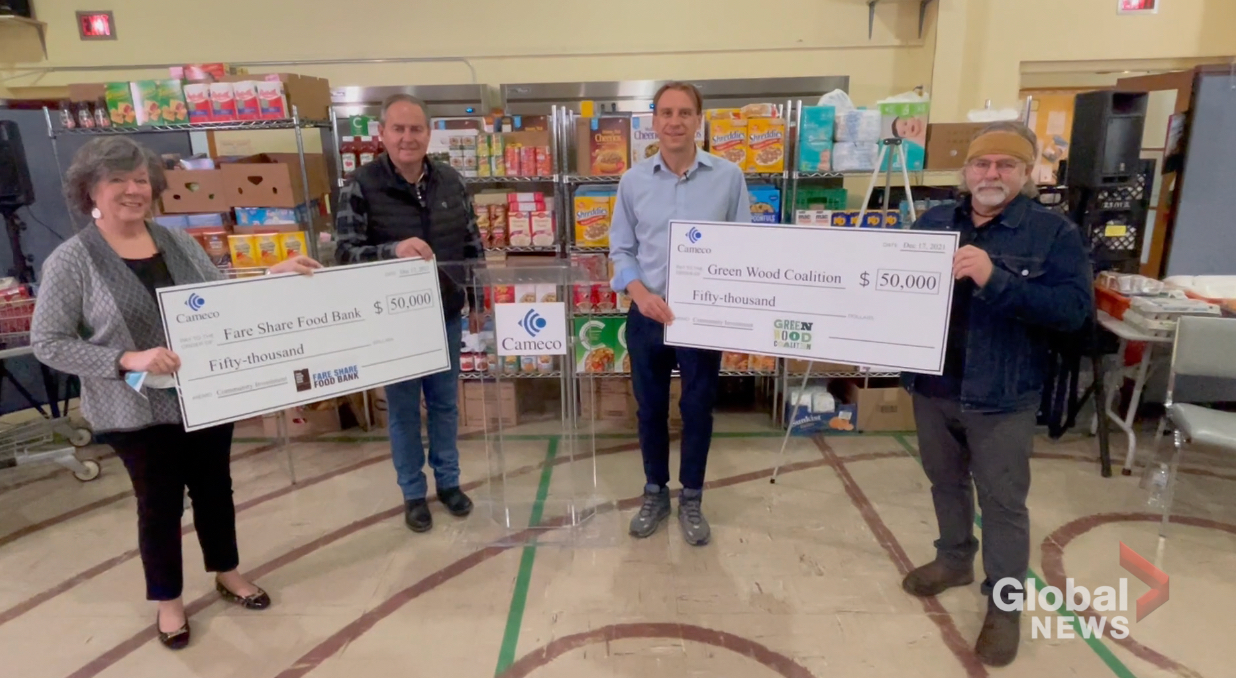 Cameco is providing $100,000 to be shared equally between the Northumberland Fare Share Food Bank and Green Wood Coalition in Port Hope, Ont.