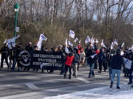 On Saturday, 625 Laval bus drivers walked off the job, leaving transit users without service. Nov. 27, 2021.