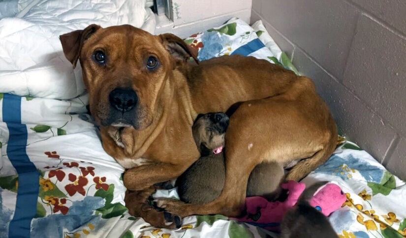 “She was living outdoors and starving, but she was obviously doing everything she could to try to feed her puppies and keep them safe,” Bonnie Pequin with the BC SPCA in Nanaimo said in a release. “She is such a sweet, loving dog and a very good mother.”