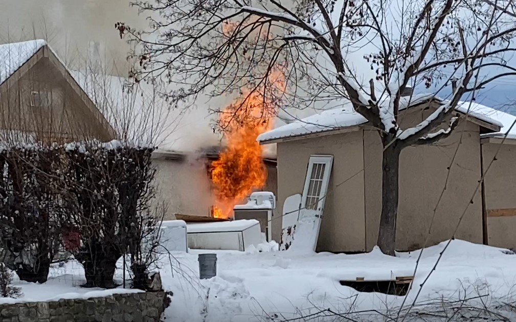 An abandoned Kelowna house slated for demolition went up in flames Monday.
