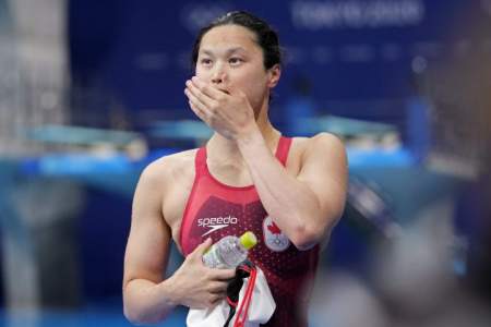 The 21-year-old from London, Ont., won gold in the women’s 100-metre butterfly on Tuesday with a Canadian record time of 55.04 seconds.