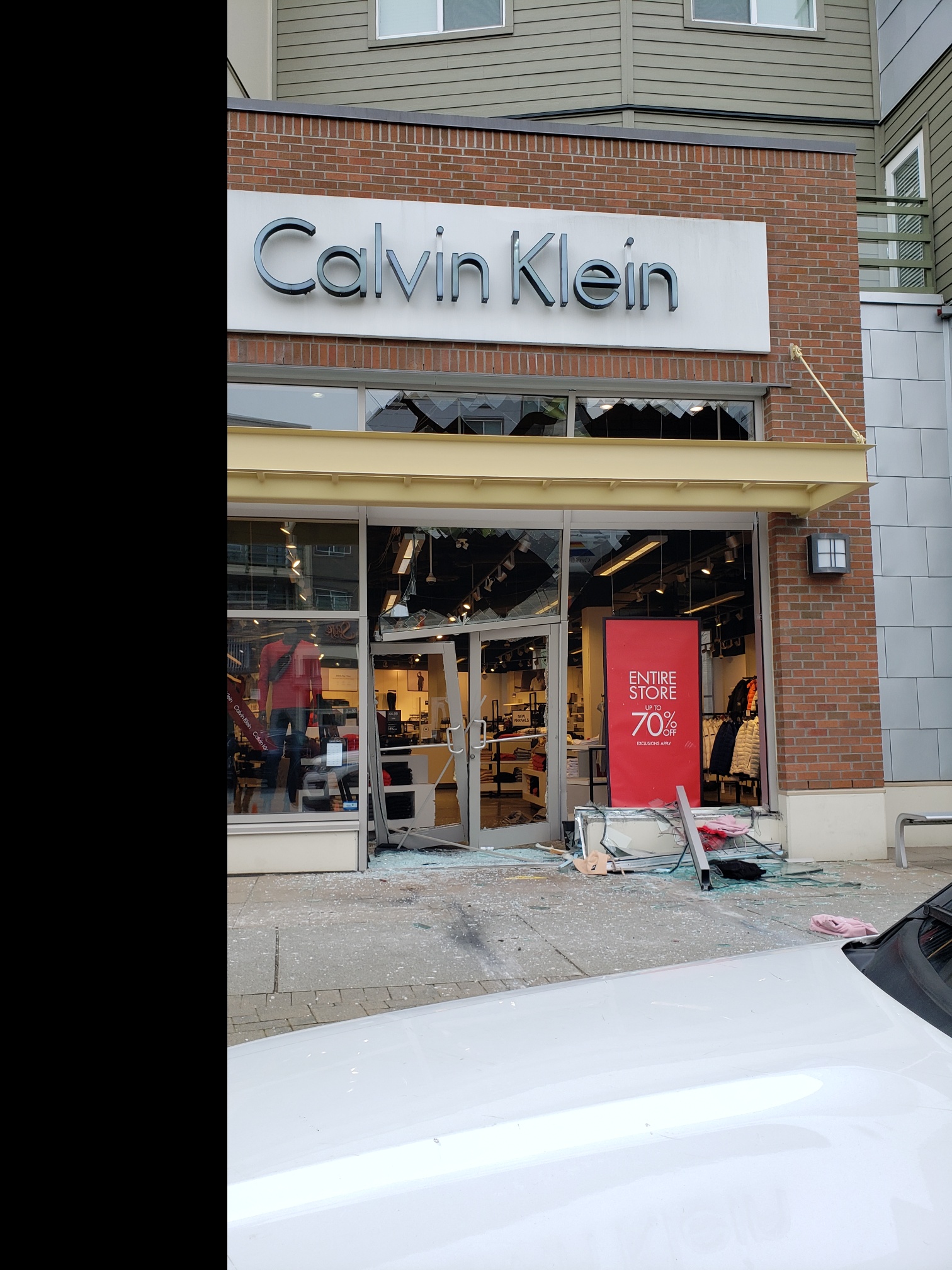 Police in Surrey, B.C. are investigating after a vehicle was used to break into a Calvin Klein outlet store and roughly $5,000 worth of merchandise was stolen.