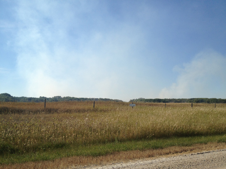 The smoke appears in two different spots west of Friesen Road near Dundurn, Sask.