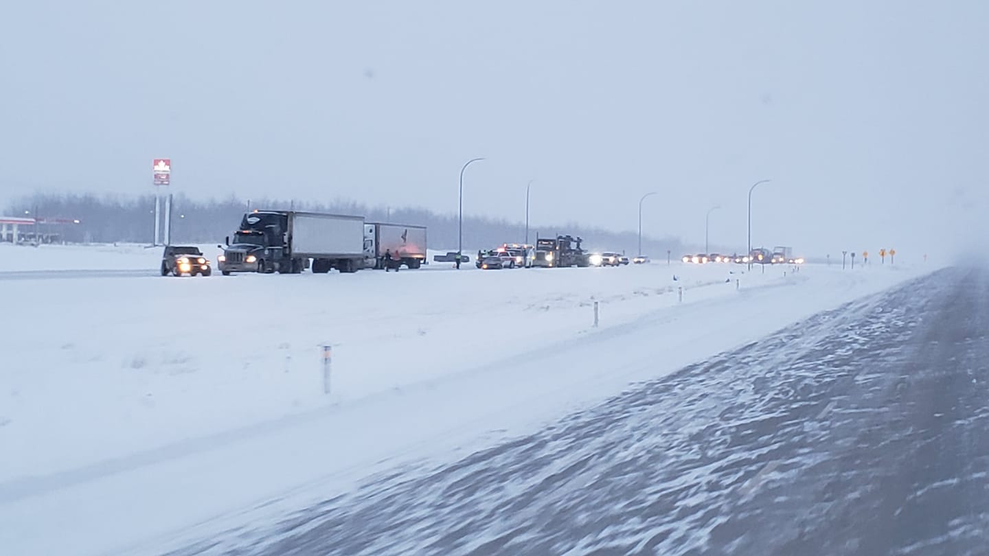 According to Alberta Emergency Alert, Highway 43 westbound was blocked between Highway 633 and Highway 765.