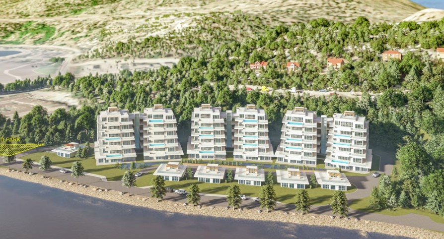 “The form of the buildings and bungalows reflects and reinforces the quality and drama of the surrounding landscape and lakefront, resulting in three buildings with European hill town style stepped-floor levels that form large terraces on each building and for each individual suite and six individual one level lakeside bungalow,” reads the promotional material for the development.