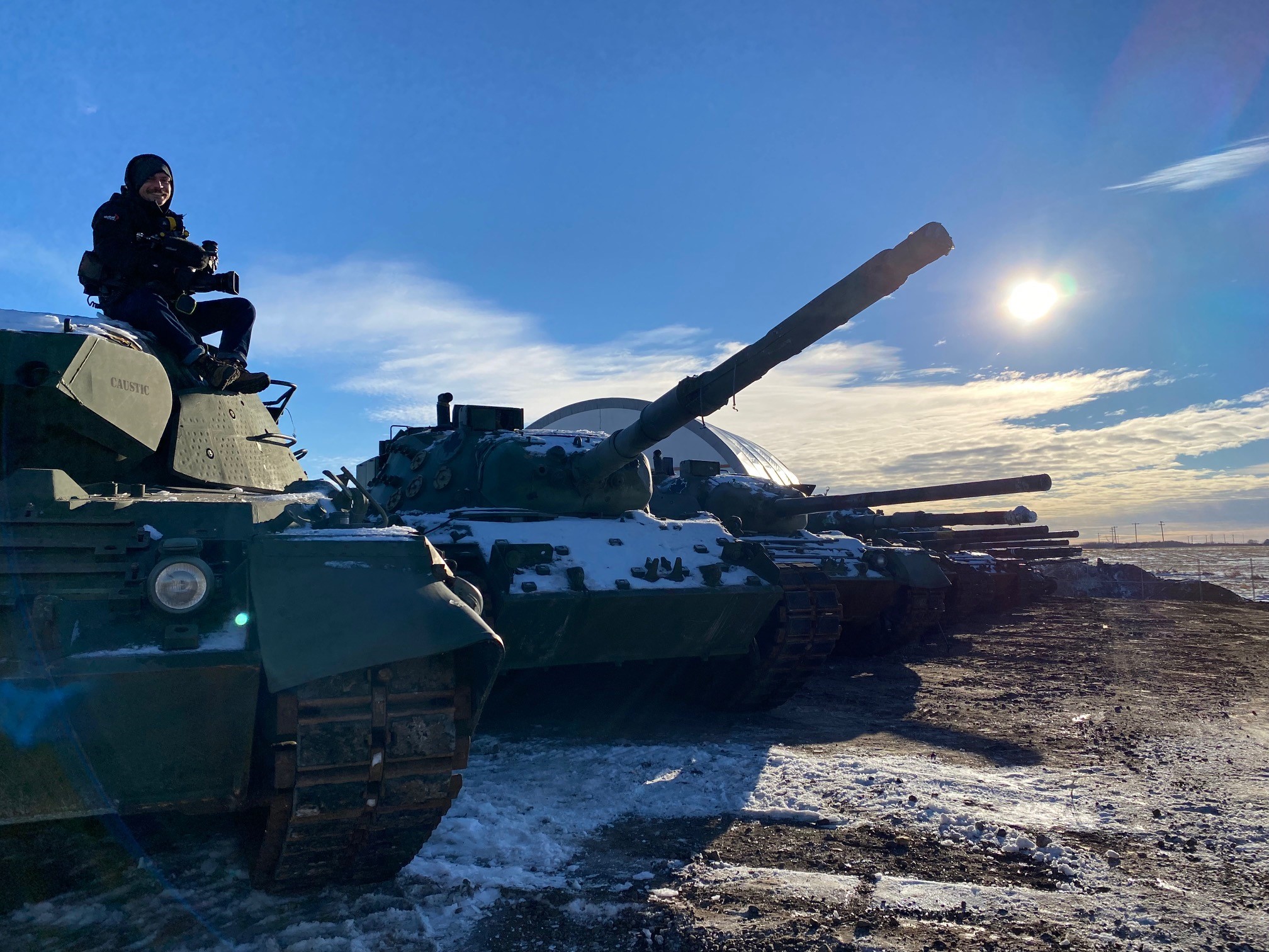 The central Alberta town has been invaded by a part of Canadian military history. Leopard 1 tanks are neatly lined up in a work yard on the west end of town.