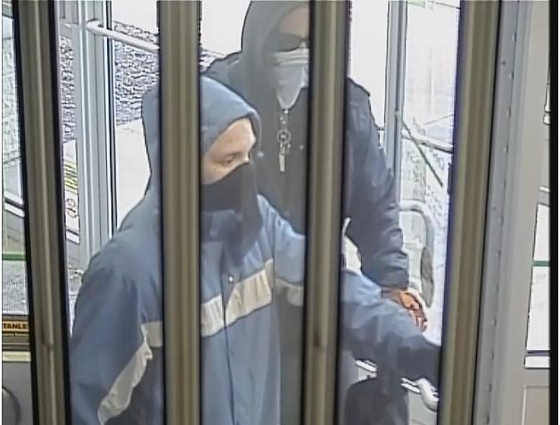 The second suspect is described as being about 40-years-old, also with a thin build, and wearing a black jacket and grey pants. This suspect had a white or grey “gaiter” style bandana over his face.