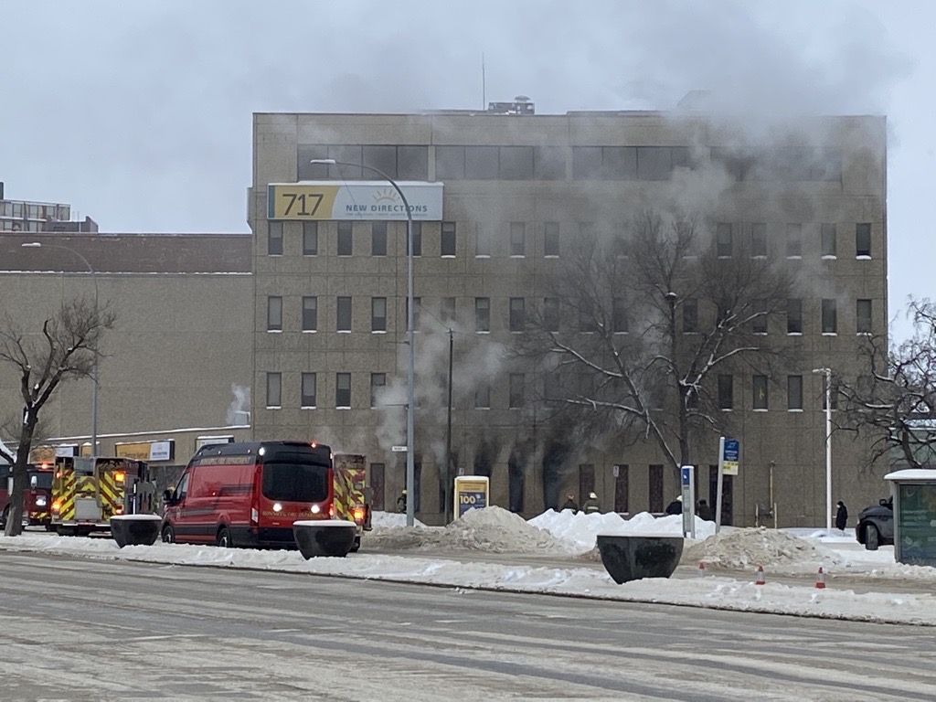 No injuries are being reported after fire broke out at an office building on Portage Avenue near downtown Winnipeg Monday morning.
