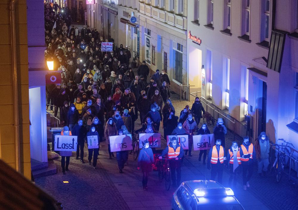 Tens of thousands of people in total took to the streets in scores of German towns and cities for weekly marches that have organizers have labeled “strolls” in an attempt to bypass restrictions on public gatherings. Counter-protests were also held in towns such as Rostock and Trier, the dpa news agency reported.