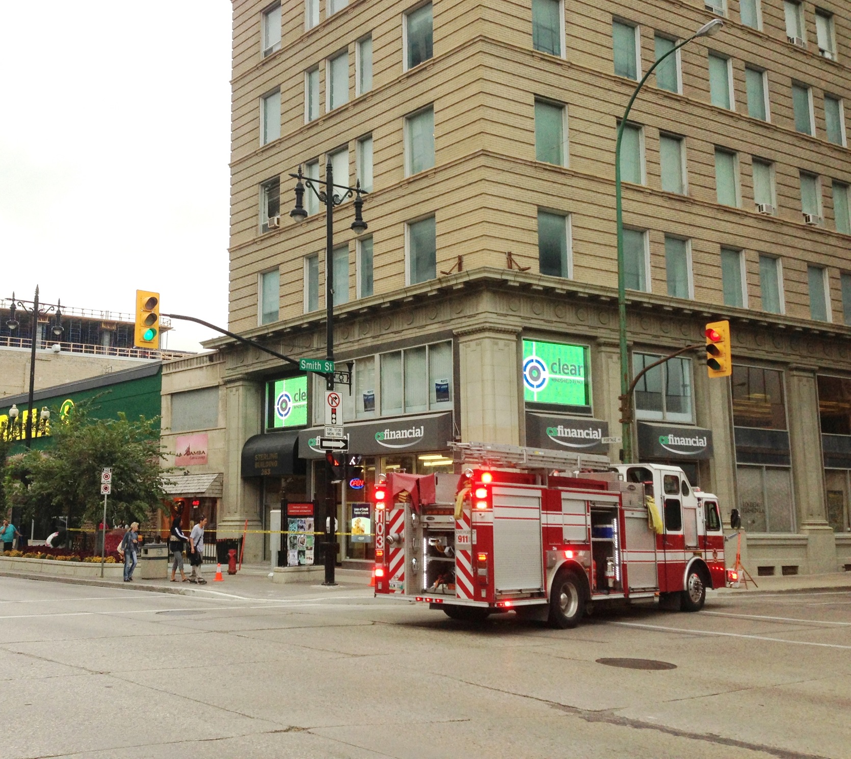 It happened at about 3 p.m. on the fourth floor of 283 Portage Avenue. The blast blew out the window, sending shattered glass down onto the sidewalk on the north side of Portage Avenue.