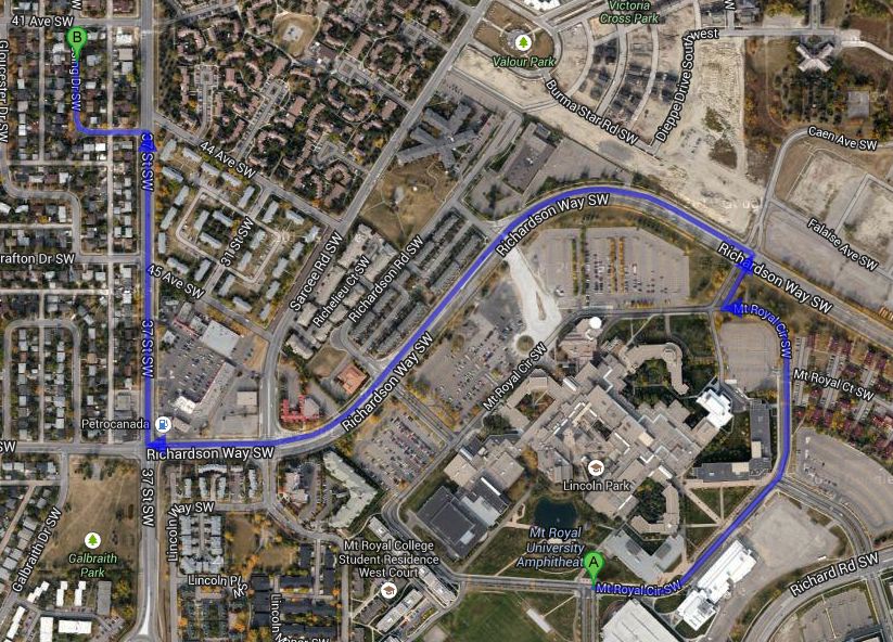 Many students park in areas around MRU, because there are only limited spots available on campus. There are no ‘No Parking’ signs or restrictions of any kind along Gissing Drive.
