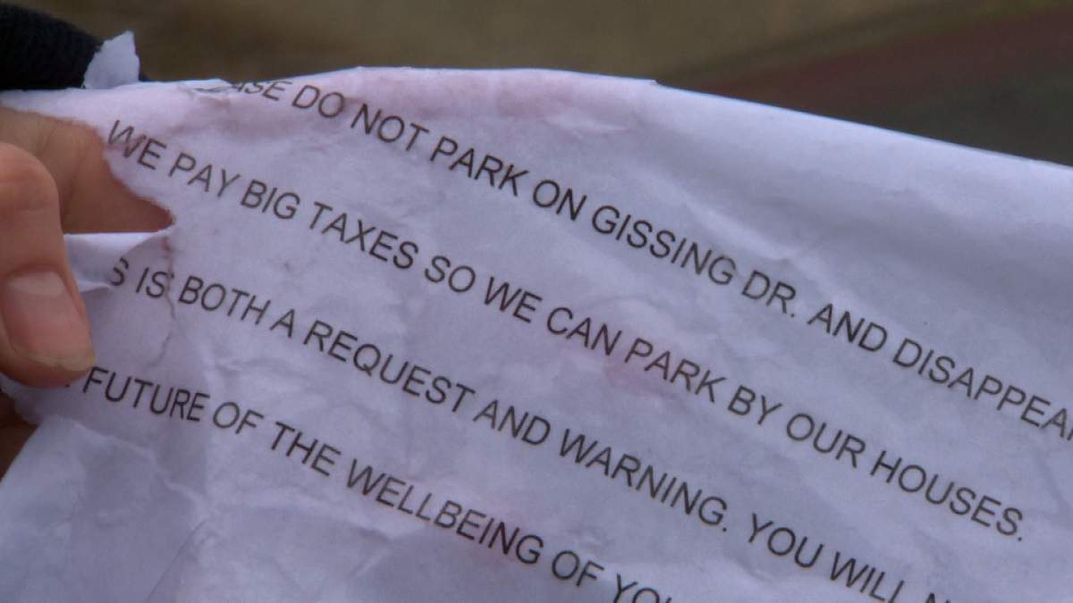 CALGARY- A number of Mount Royal University students are upset after receiving a threatening note while parking on a residential street several blocks from school.