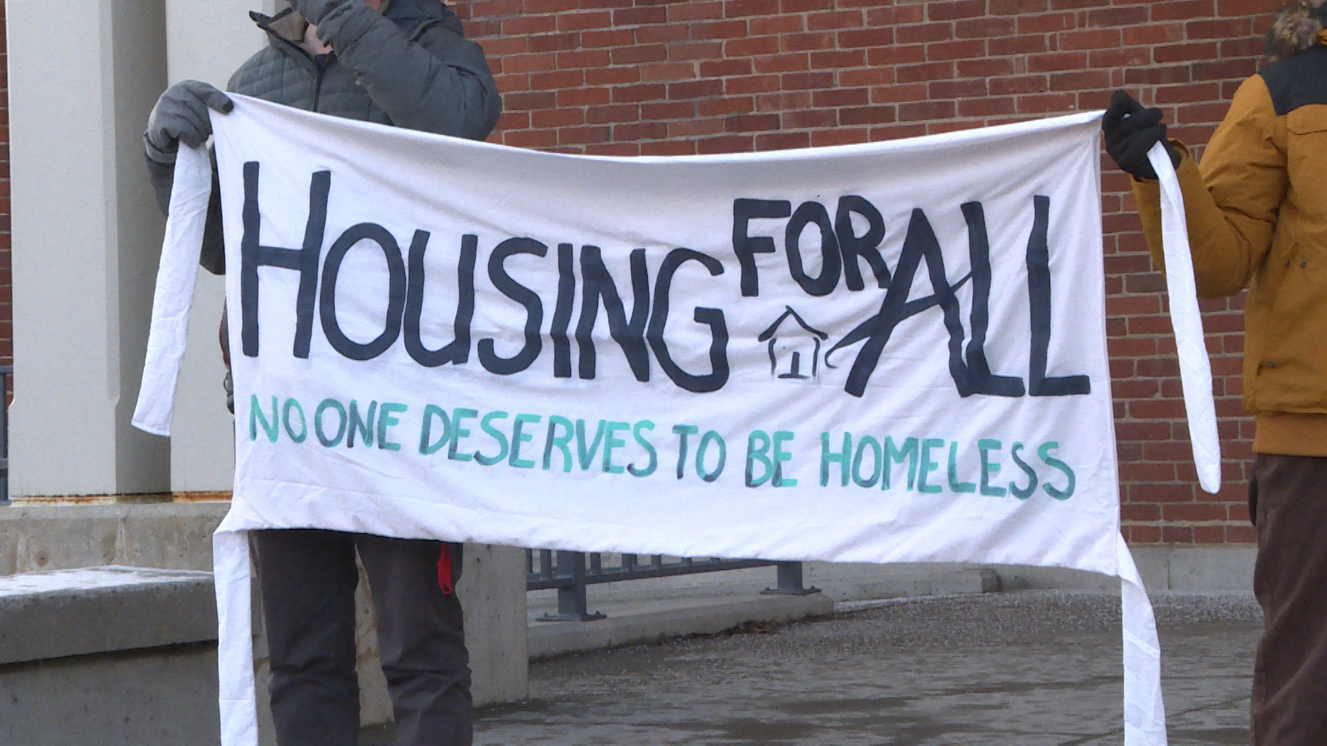 A cold yet respectful crowd listened to organizers as well as those who are currently experiencing homelessness.