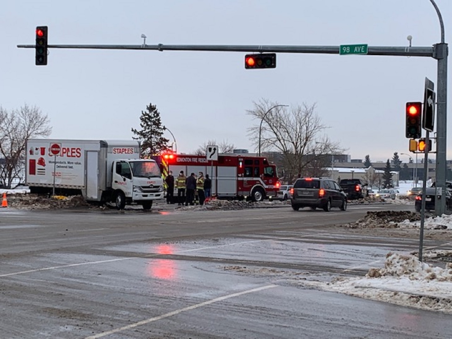 In an update just before 11:30 a.m, police said sand was applied to the stretch of 23 Avenue to try to create better traction for drivers. No injuries were reported, but the EPS said some vehicles were damaged.