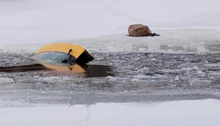 Video of the area posted to social media appears to show a yellow car driving along the frozen waterway at high speeds. Photos then show the driver appearing to take a selfie while standing on the rear window of the sinking vehicle.