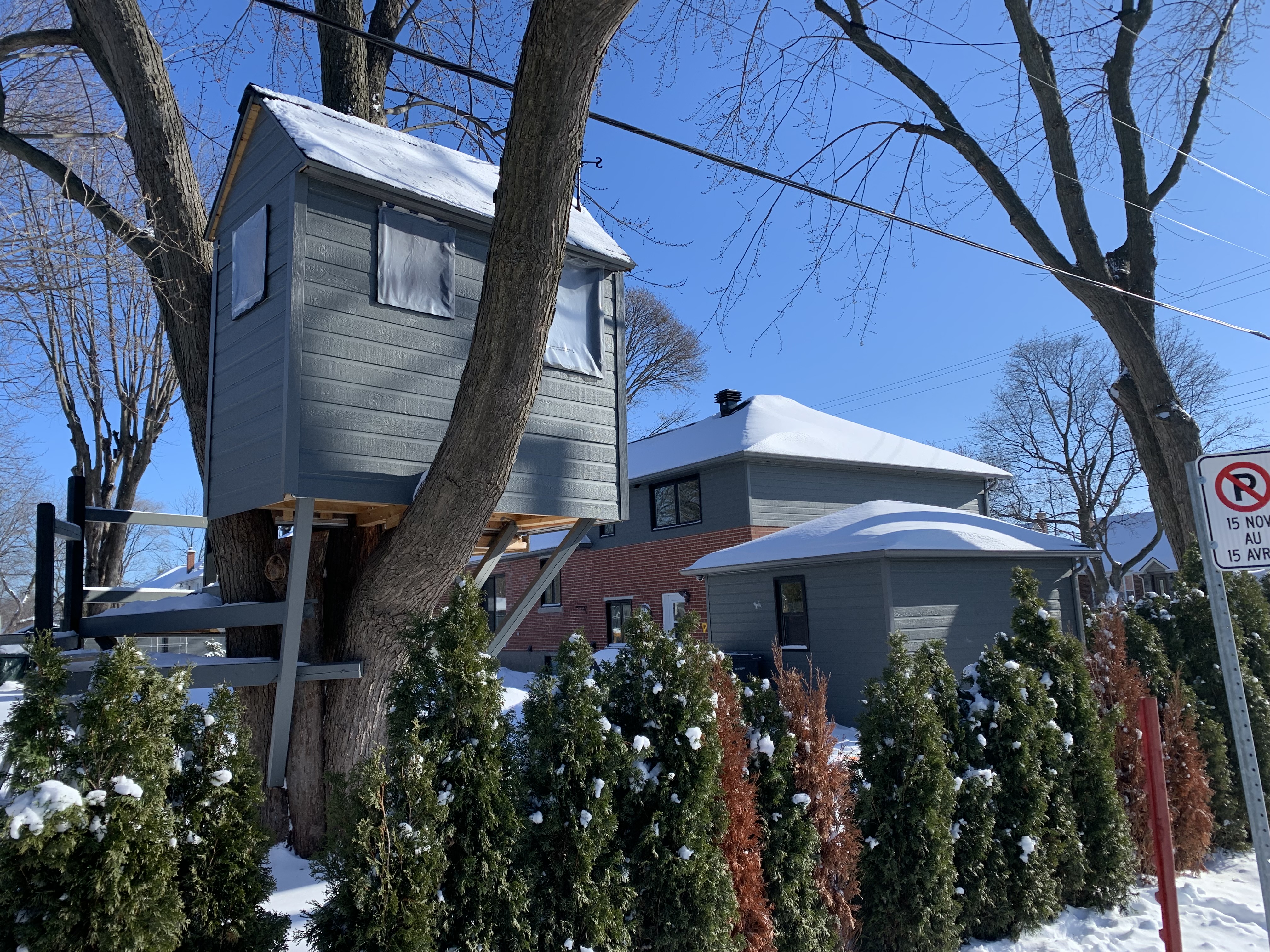 After finishing the treehouse last November, Ducree received a letter from the City of Pointe-Claire claiming he never had permission to build it because the treehouse is mostly on city property. He was ordered to dismantle the structure.