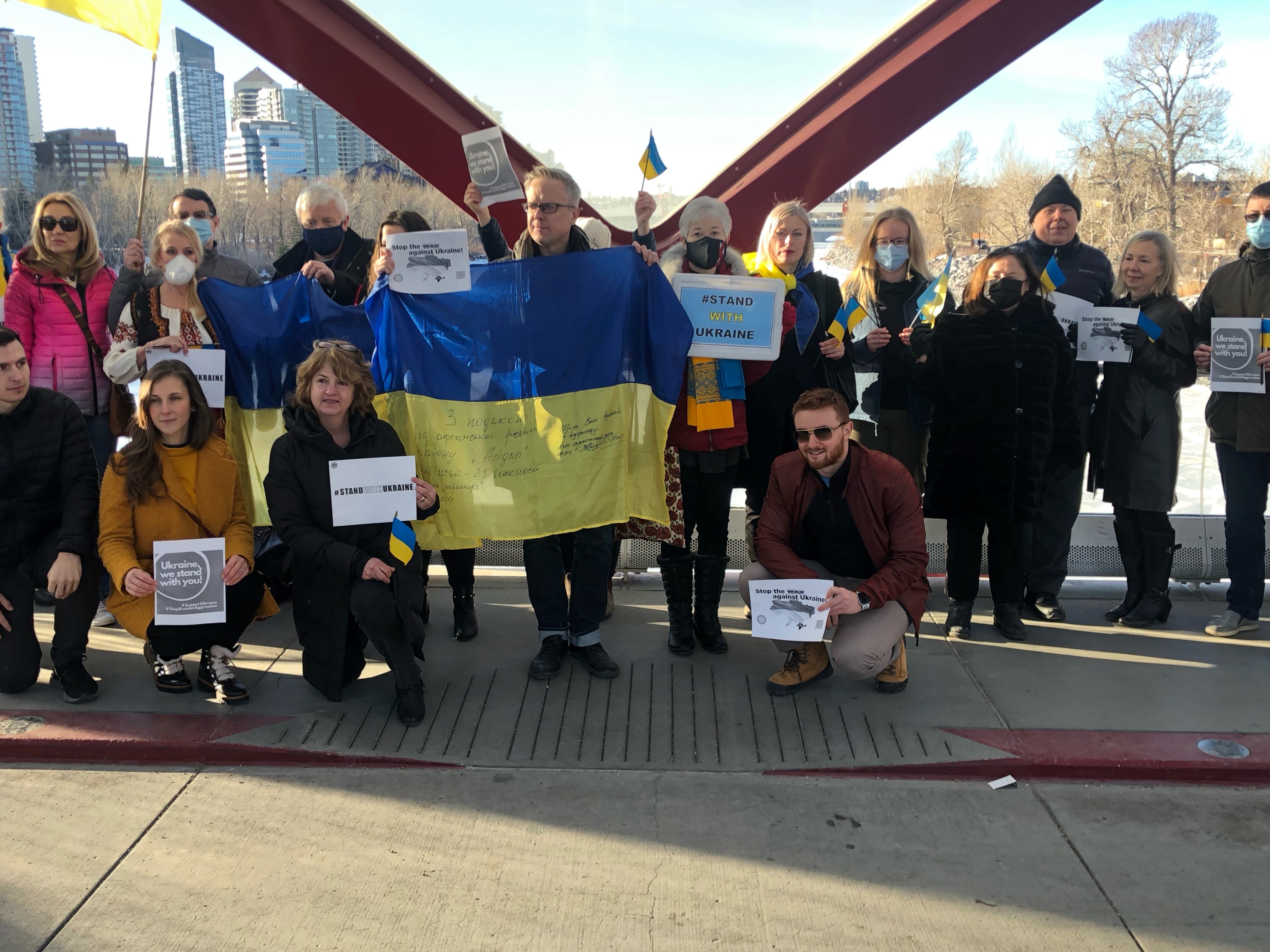 As tensions between Ukraine and Russia continue to grow, members of Calgary’s Ukrainian community gathered at the Peace Bridge Saturday morning to show support for the embattled nation.