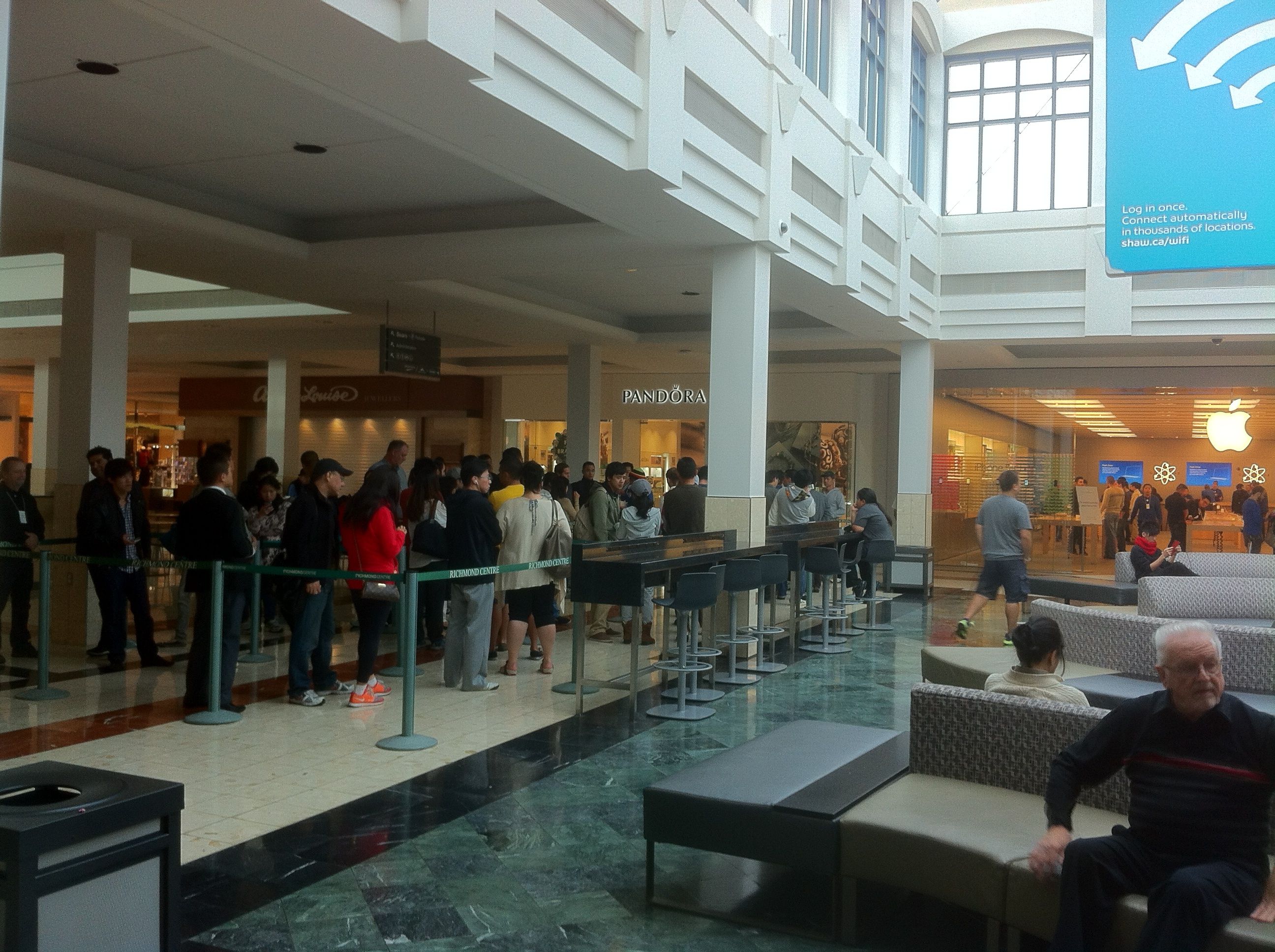 About 150 people lined up outside the Apple Store in Pacific Centre to get their hands on the new device.
