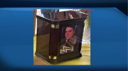 A Facebook post today from the RCMP shows a photo of the urn, an ornate box that features a photo of the young man.