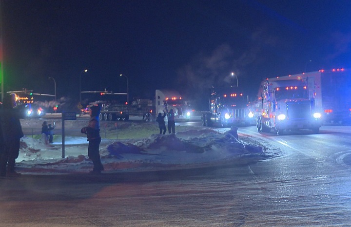 At the Regina Bypass, hundreds of trucks and other vehicles rolled through and were greeted by supporters who braved the cold weather to welcome the truckers to town.