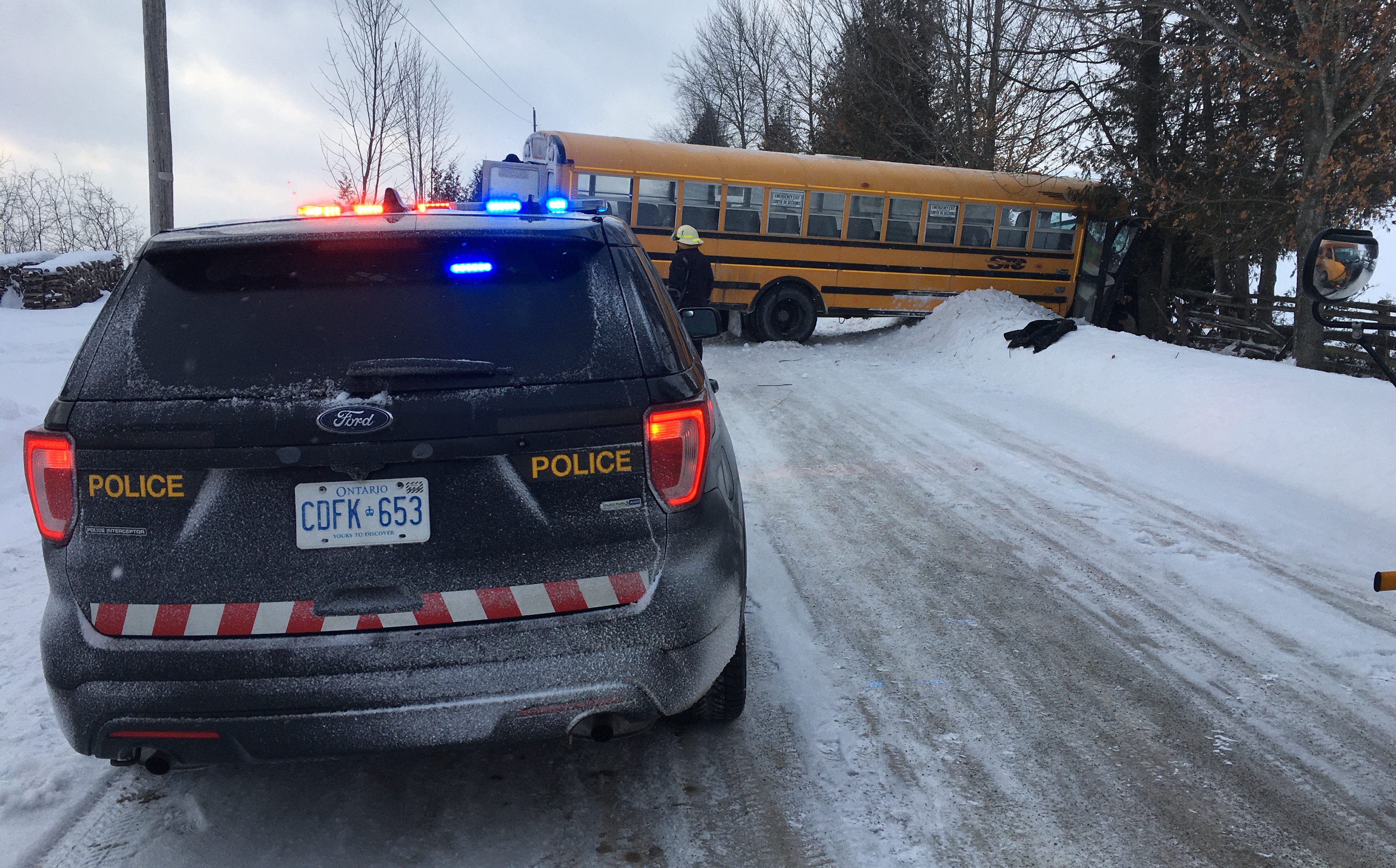 Several dozen young students were aboard the bus. Several youth and the bus driver were assessed by paramedics with one student being transported to Peterborough Regional Health Centre with a minor injury, OPP Const. Rich Nie told Global News Peterborough.