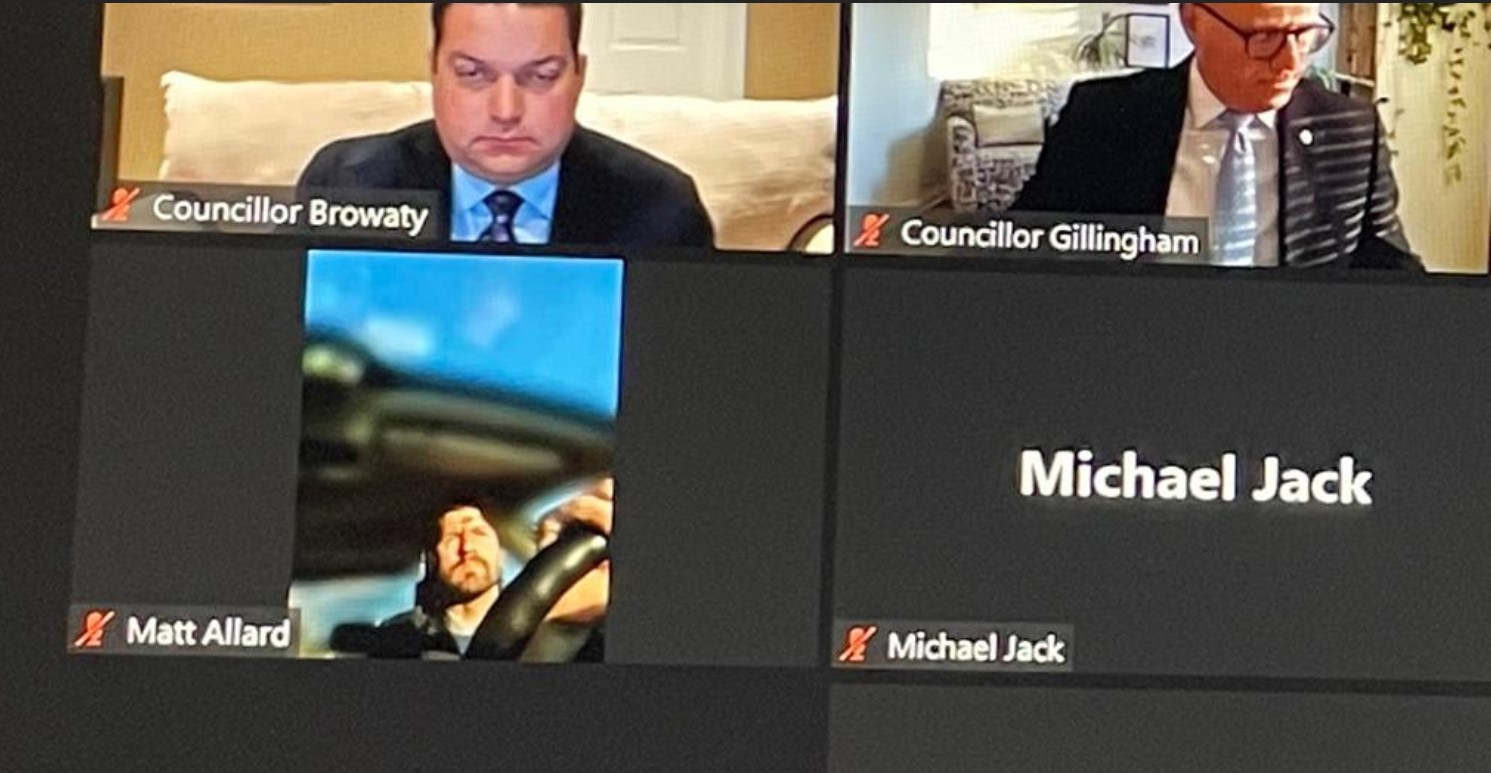 Coun. Allard says he was partaking in the meeting from his home office, as per COVID-19 protocols, when he stepped out to pick up his daughter from daycare, and kept the video meeting on in his vehicle through his hands-free device. He says he was following the Highway Traffic Act.