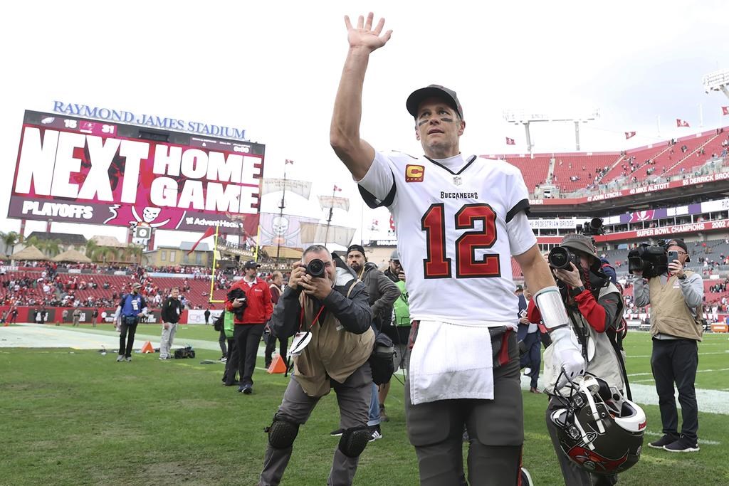 The 44-year-old Brady goes out after leading the Tampa Bay Buccaneers to a Super Bowl title last season and NFC South championship this season.