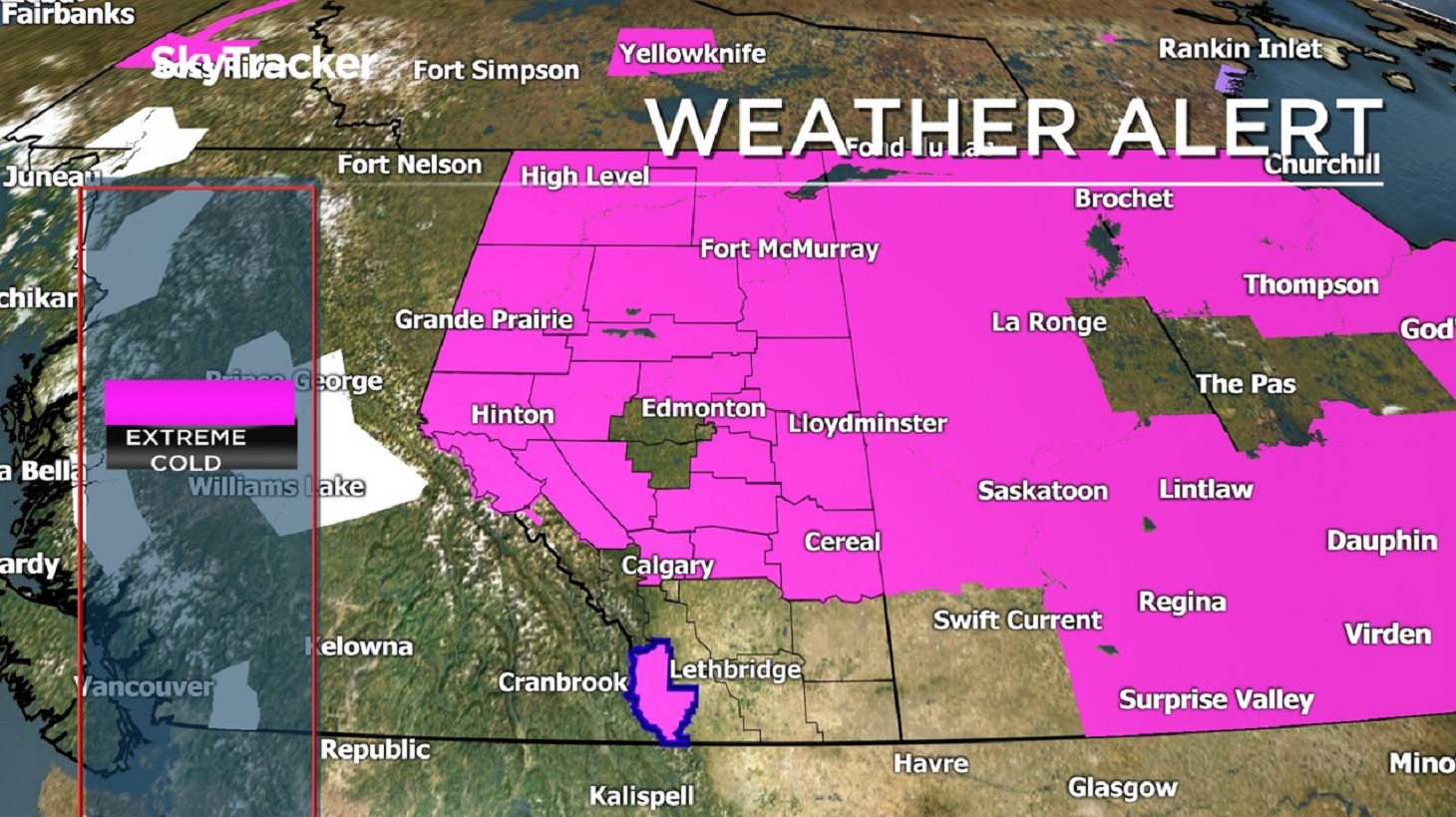 As of 8 a.m. Wednesday, Edmonton was not included in the extreme cold warning, nor was Calgary.