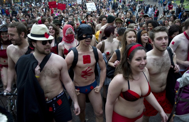 The raucous protests were staged against tuition increases by the former Liberal government, which were eventually pared back when the Parti Quebecois came to power.