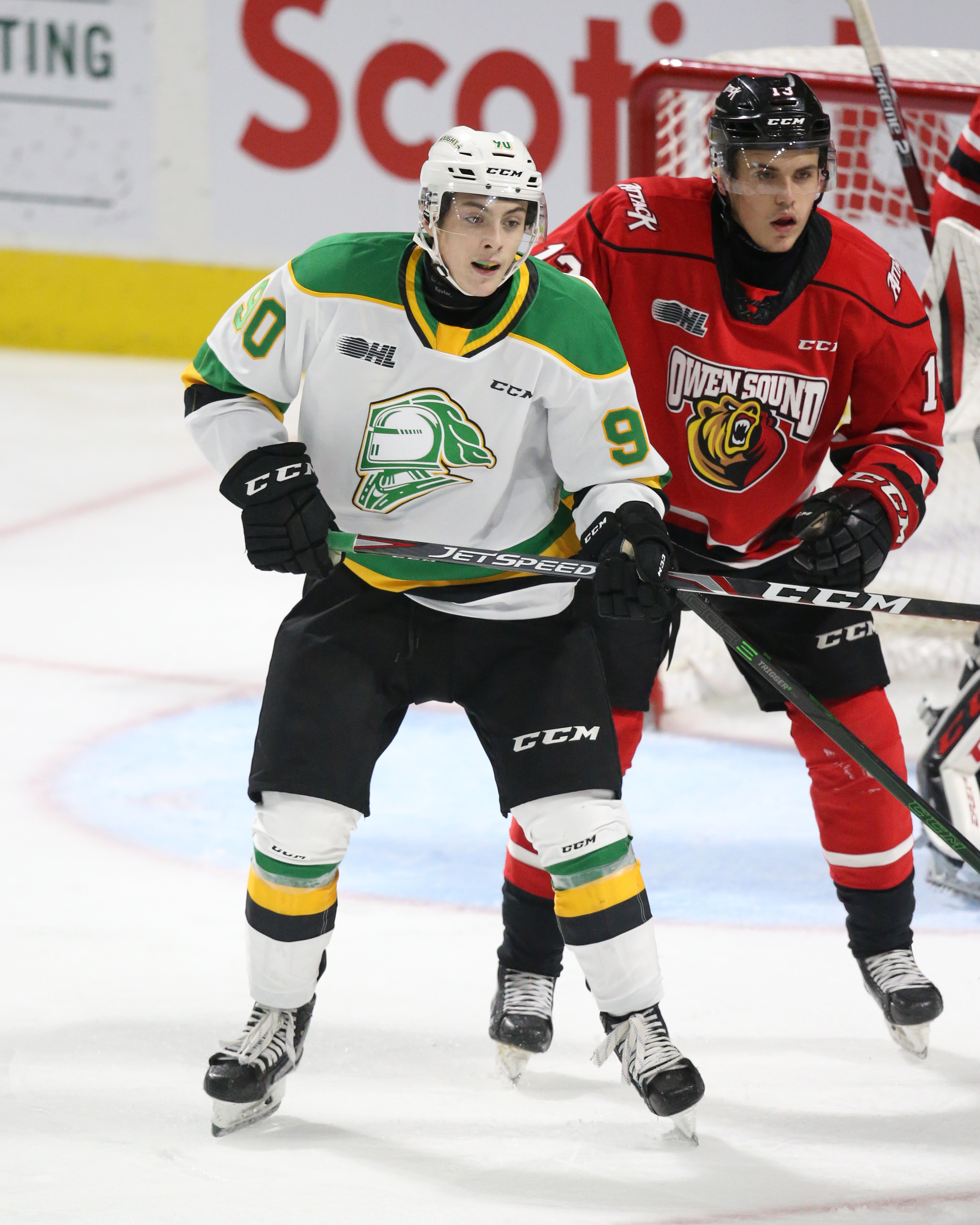 London captain Luke Evangelista finished the weekend with five goals in two games. He completed his second hat trick of the season against Kitchener on February 5 and now has 32 goals in 31 games joining Brennan Othmann of the Flint Firebirds and James Hardie of the Steelheads on the 30-goal plateau.