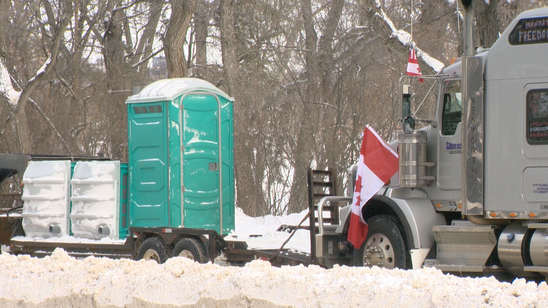 Protestors remain parked alongside Albert Street near the Saskatchewan Legislature for a second day — with horns blaring.