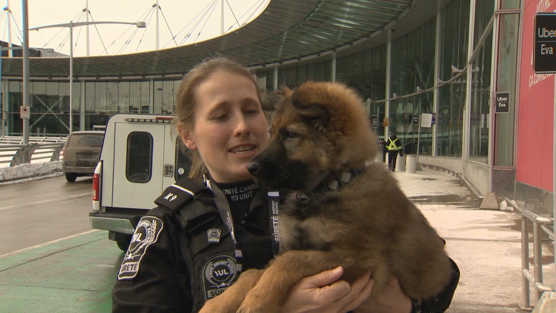 He is playful, even cute, but a 10-month-old German Shepherd’s role here at Montreal’s Trudeau airport is no game.