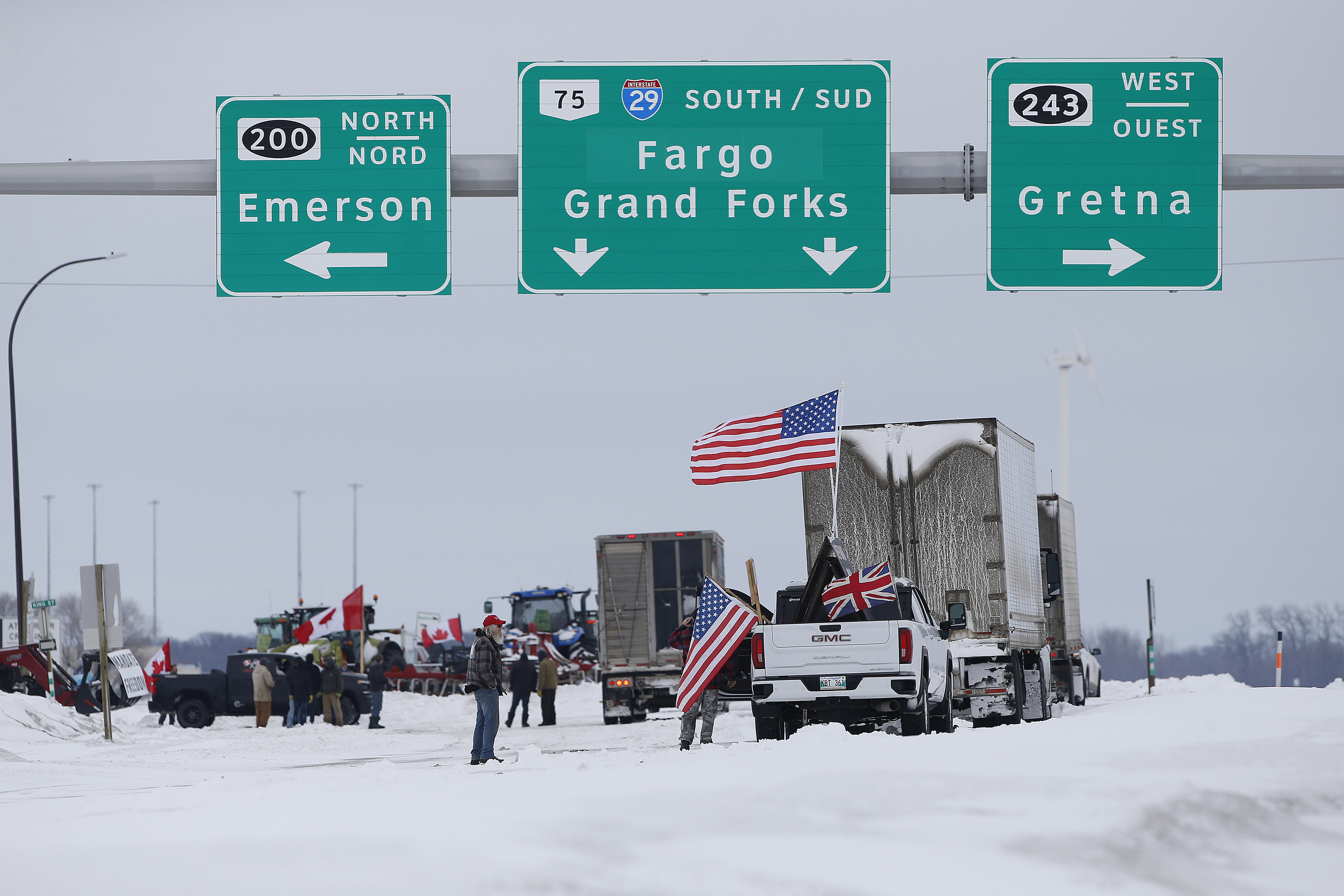 The Canada-U.S. border crossing at Emerson, Man., remains shut down to most traffic, but Manitoba RCMP said Tuesday afternoon that the blockade will end shortly.