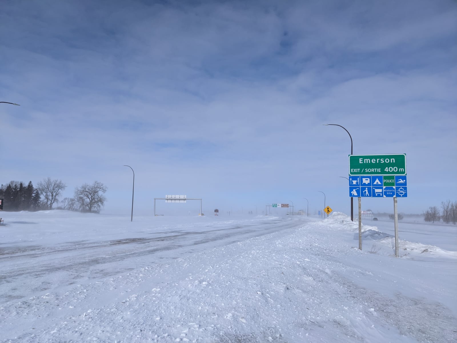 RCMP Sgt. Paul Manaigre spoke with media near the border at Highway 75 and Provincial Road 243 Wednesday morning, and said police escorted the trucks out of the area so the highway can be reopened.